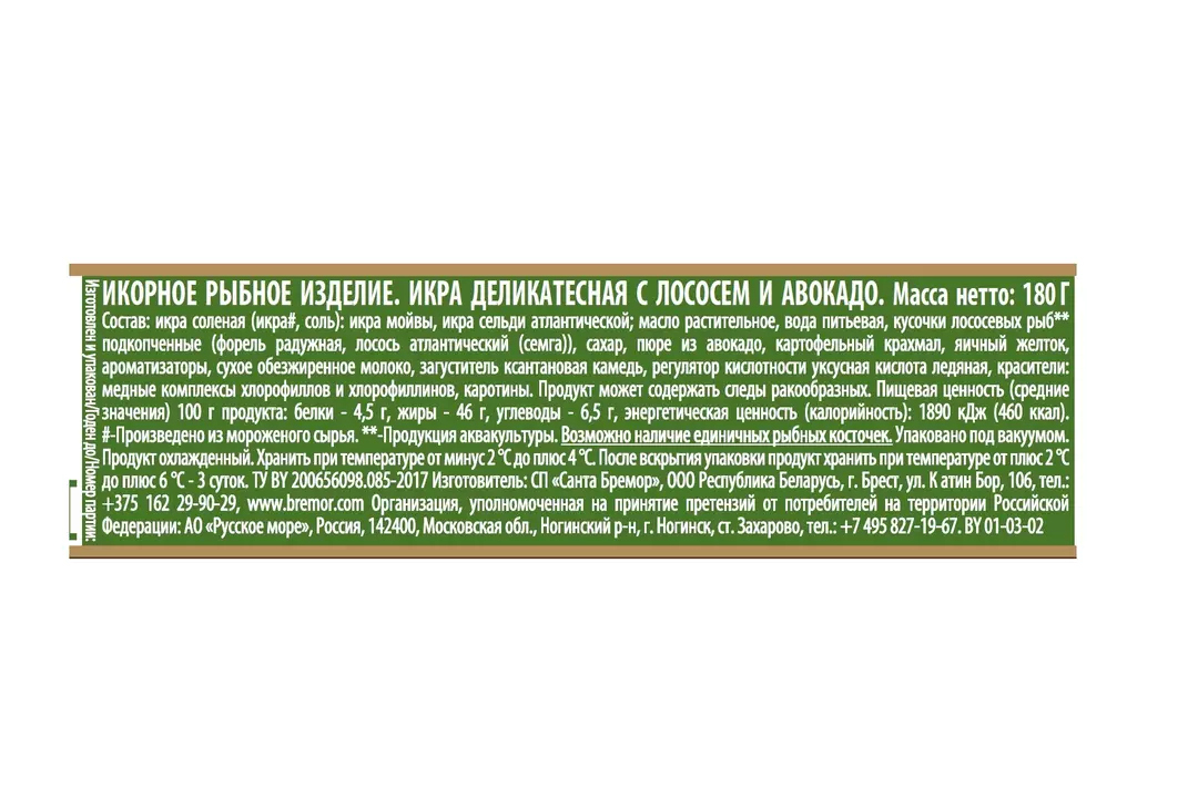 Икра Санта Бремор с лососем и авокадо ст/б 180 г / Супермаркет