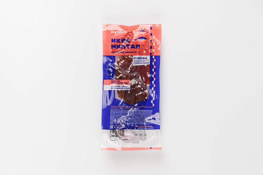 Икра завялена прямо в ястыках — тонкой естественной оболочке, и поэтому отлично держит форму. Без излишков соли, с характерной горчинкой во вкусе и плотной, чуть тягучей консистенцией. В общем, советуем приготовиться к удовольствию, а ещё запастись зубочистками.