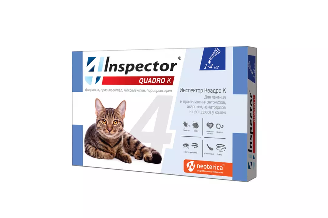 Inspector Квадро капли от внешних и внутренних паразитов для кошек 1-4кг I301 (Экопром)