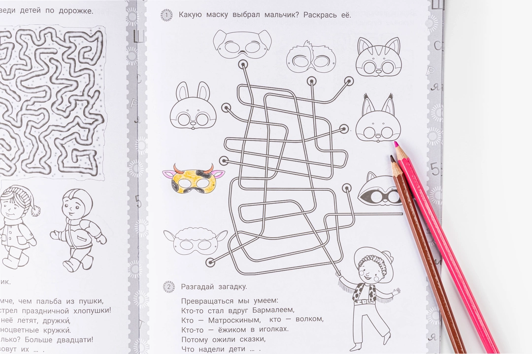 Книга с загадками приглашает детей в мир головоломок. На каждой странице ребёнок найдёт упражнения на логику: лабиринты, раскраски, задачи на сравнение и нахождение отличий. Все они связаны с зимней и новогодней тематикой. Дети научатся строить причинно-следственные связи и выполнять несложные задания. Сборник подойдёт для старших дошкольников и младших школьников.