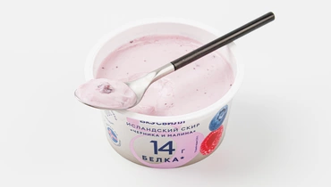 Знаменитый кисломолочный высокобелковый продукт, который готовится по исландской рецептуре из свежего молока с использованием особой закваски SKYR. Благодаря ей скир приобретает плотную, но нежную кремовую текстуру. Ягодный наполнитель с черникой и малиной даёт лёгкую кислинку и насыщенный вкус, в котором сладость и свежесть уравновешены. Подойдёт для завтрака, перекуса или лёгкого десерта. Понравится тем, кто ищет альтернативу обычным йогуртам с насыщенным ягодным вкусом. В порции 14 г белка.