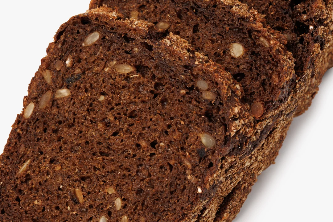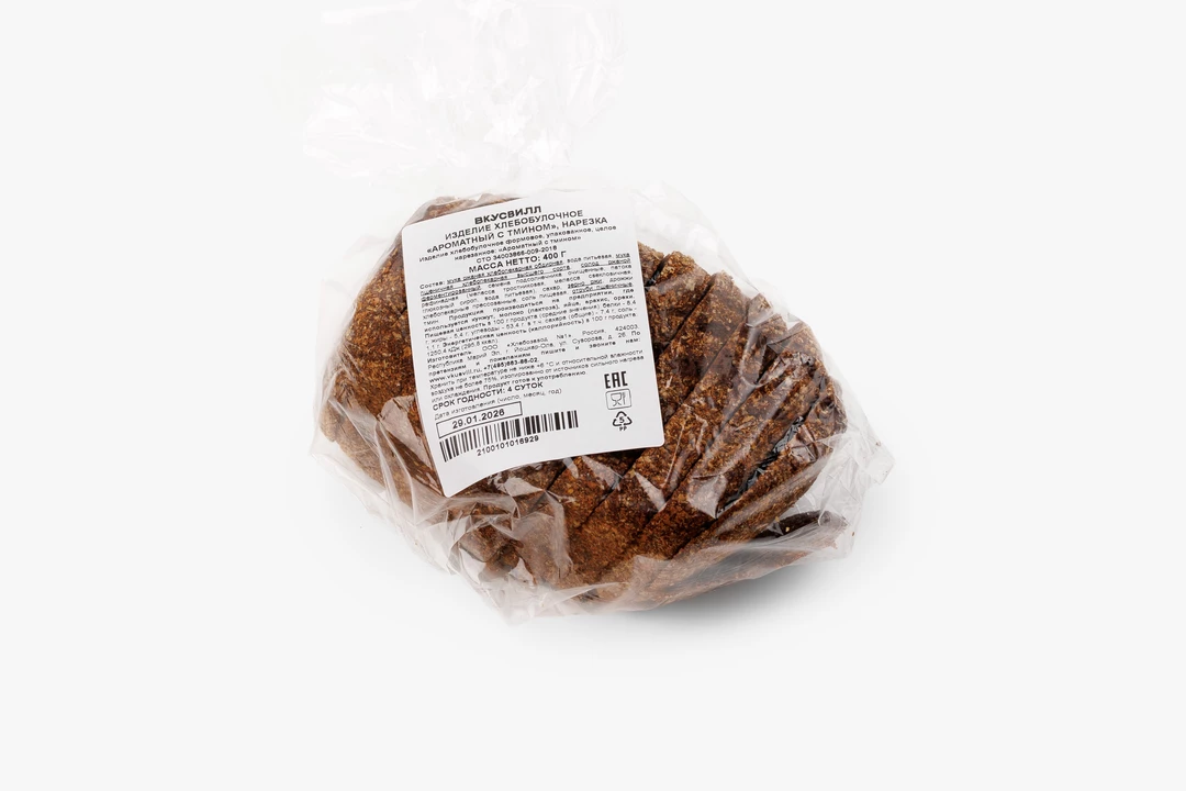Тёмный ржаной хлеб с тмином и семечками подсолнечника — ароматная выпечка с насыщенным вкусом. Обдирная ржаная мука и ферментированный солод придают мякишу плотную текстуру и характерную кислинку, а патока добавляет лёгкую солодовую сладость. Тмин и семечки дают пряные и ореховые нотки. Удобная нарезка позволяет быстро собрать бутерброд или подать хлеб к супу. Особенно хорошо ржаные ломтики сочетаются с сыром, солёной рыбой или сливочным маслом.