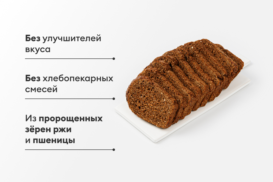 Ржано-пшеничный хлеб, выпеченный из ржаных зёрен и солода без добавления муки. Обладает сладковатым вкусом и лёгкой пористой текстурой. Чтобы приготовление любимых бутербродов стало ещё быстрее, хлеб заботливо нарезан на аккуратные ломтики.