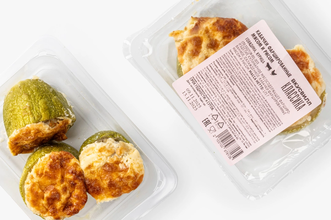 Нежные кабачки, запечённые под шапочкой из моцареллы. В начинке — сочный фарш из говядины и куриных бёдрышек с рисом и щепоткой специй. Разогрейте в СВЧ-печи прямо в упаковке — и сытный обед готов.