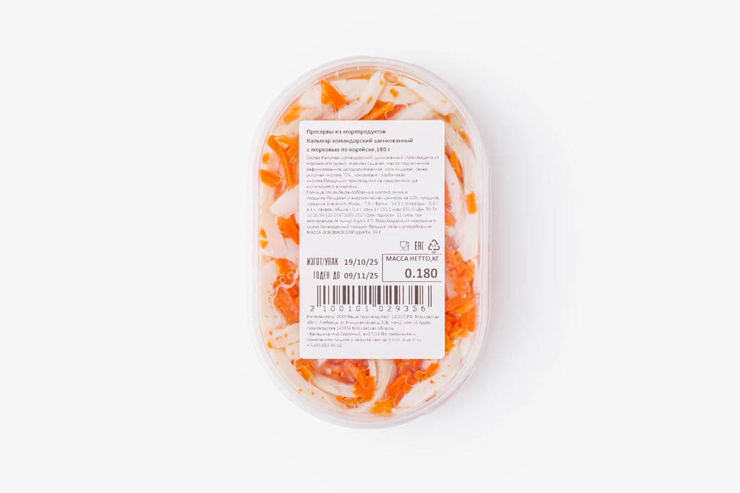 Кальмар командорский с морковью по-корейски, 180 г