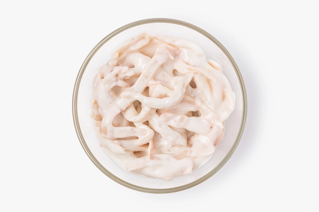 Мягкие полоски кальмара в густом сливочном соусе. Неповторимо нежная «морская» закуска с ноткой блаженства. Можно добавить в салат, пасту или подать на ломтиках подсушенного багета.