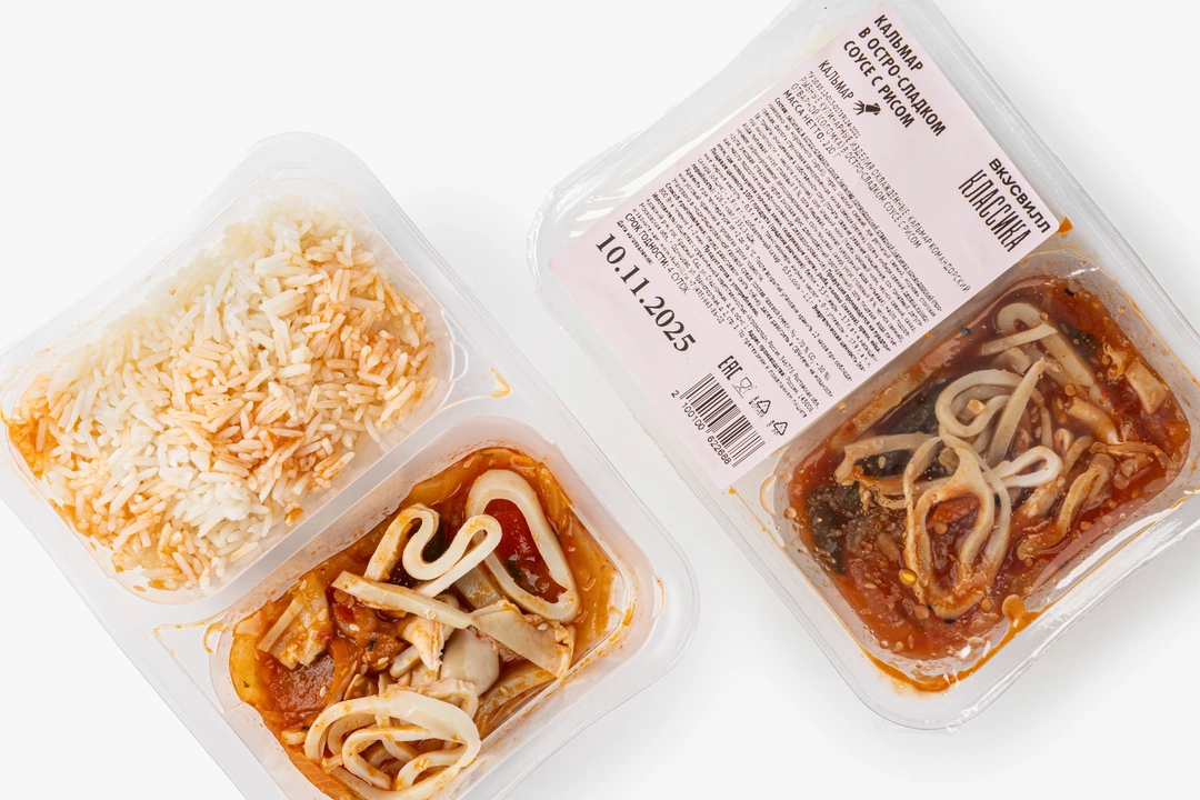 Стиль яркой азиатской кухни — сладко-пряная гамма с деликатной остротой и приятной кислинкой. К нежному кальмару добавили много овощей и приготовили в густом томатном соусе с имбирём, чесноком и сладким чили. А на гарнир выбрали рассыпчатый длиннозёрный рис.
