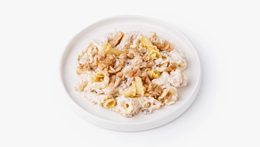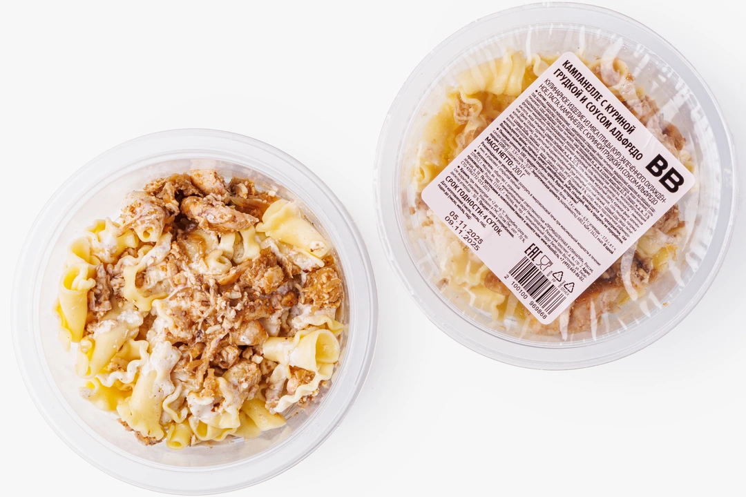 Нежная паста кампанелле с запечённой куриной грудкой и сливочным соусом альфредо. Соус на основе сливок и творожного сыра получается мягким, с лёгкими ореховыми оттенками мускатного ореха. Карамелизованный лук добавляет лёгкую сладость, а грецкие орехи подчёркивают сливочность и делают вкус сложнее и богаче. Сытное и гармоничное блюдо, которое приятно и тёпло раскрывается в горячем виде.