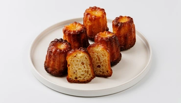 Классическая французская выпечка в виде цилиндра с хрустящей карамельной корочкой. Тесто на сливочном масле, пропитанное виски, становится особенно ароматным. А ванильный экстракт добавляет сладковатые нотки. Небольшой размер удобен для порционной подачи. Лучше употреблять канеле свежими — так сохраняется контраст между хрустящей поверхностью и мягкой серединкой.