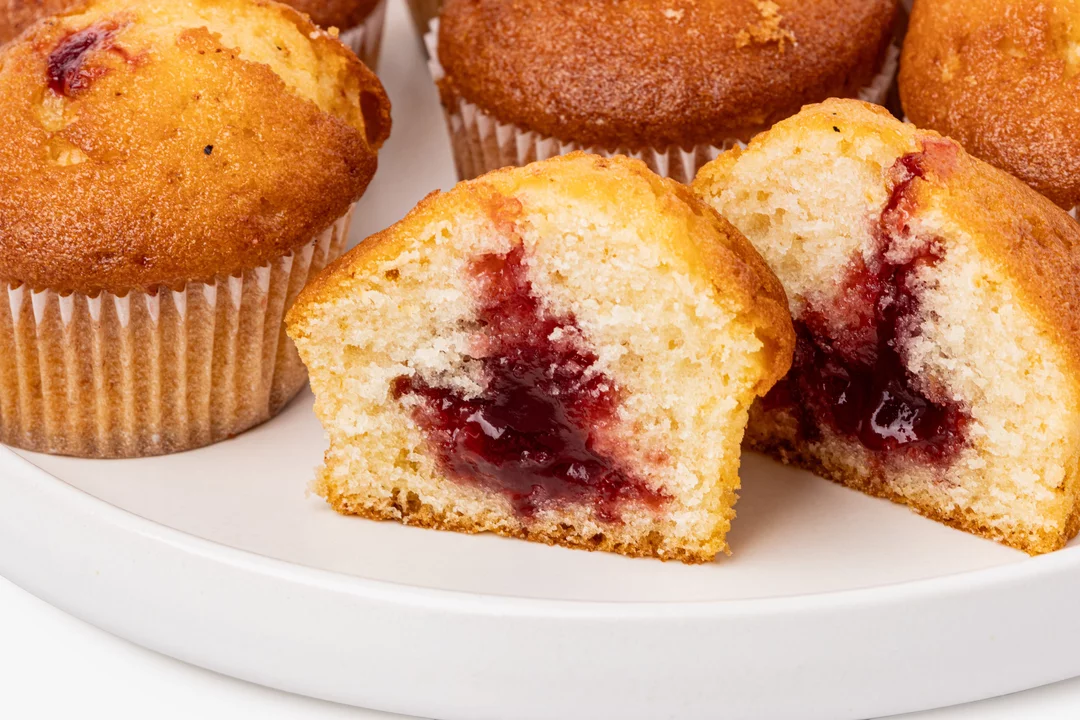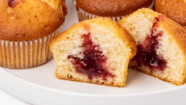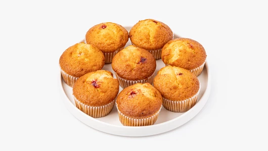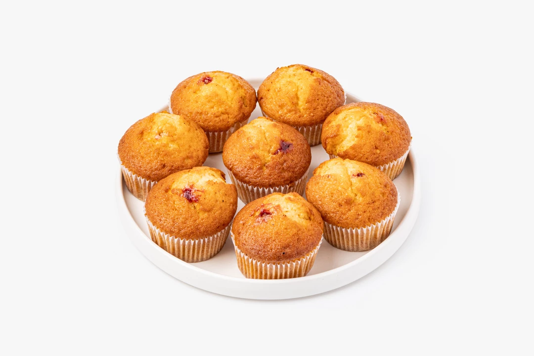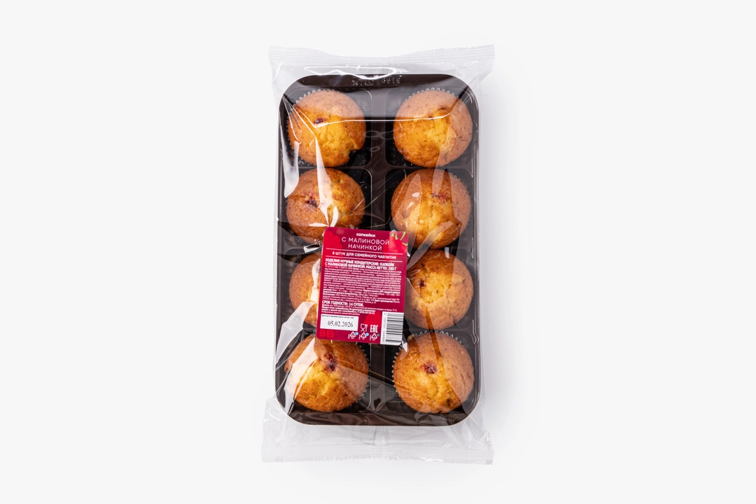 Воздушные мини-кексы с мягкой текстурой и сочной малиновой начинкой. Ягодная сердцевина даёт приятную кислинку, которая освежает сладкую бисквитную основу. Тесто получается нежным, умеренно плотным, без сухости, а ванильный аромат добавляет уютный оттенок. В упаковке 8 штук — удобно для семейного чаепития или небольшого праздника.