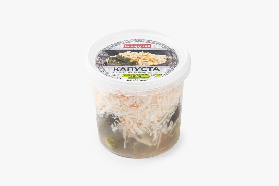 Капуста Белоручка маринованная шинкованная с маринованным огурцом 1 кг / Супермаркет