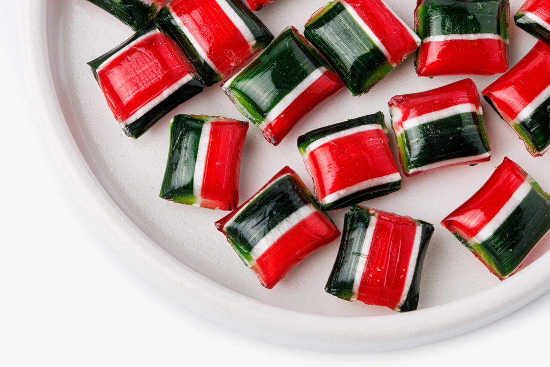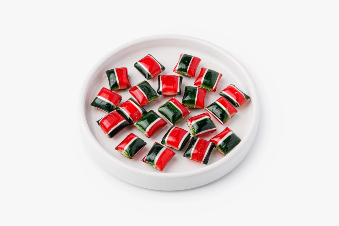 Яркая фигурная карамель с насыщенным вкусом спелой вишни создаёт праздничное настроение. Прозрачный леденец красиво переливается на свету и напоминает классические новогодние сладости из детства. Можно повесить на ёлку как украшение или подарить вместе с праздничным пожеланием. Вкус — сочный, с лёгкой кислинкой и приятным послевкусием. Лакомство особенно понравится детям — можно совместить украшение ёлки с весёлым угощением.