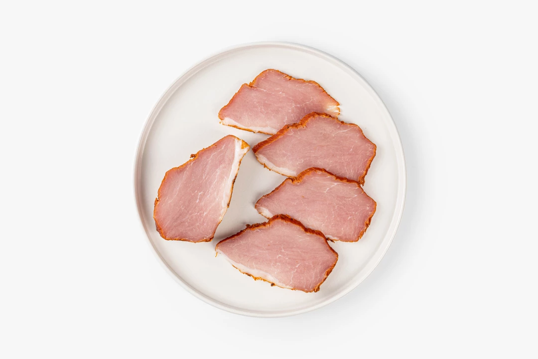 Нежный свиной карбонад, выдержанный в смеси соли и пряностей. После копчения мясо становится плотным и ароматным, с выраженным вкусом специй и лёгкой пикантностью чеснока и мускатного ореха.