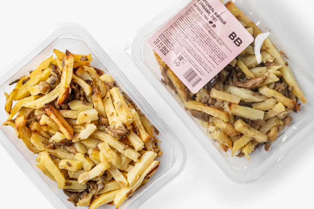 Жареный картофель с вешенками и луком — сытное блюдо с классическим сочетанием простых ингредиентов. Здесь картофель обжарен до золотистой корочки, грибы нарезаны некрупно, чтобы их вкус распределился равномерно и ощущался с каждым ломтиком картошки, а лук вносит сладковатую нотку. Лавровый лист и чёрный перец добавляют пряный фон и лёгкий аромат, не заглушая основные вкусы. Может быть и самостоятельным блюдом, и гарниром. Хорошо добавить сметану при разогреве, чтобы получилась более нежная текстура, а ещё присыпать мелко рубленной петрушкой. И тогда эту ароматную жареную картошечку будет совсем не отличить от домашней.