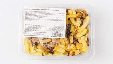 Готовим по-домашнему: обжариваем картофель с ароматными шампиньонами и репчатым луком, аккуратно приправляя солью и перцем. Не используем ароматизаторы. А чтобы сытное блюдо всегда было под рукой, бережно замораживаем его шоковым методом. Осталось разогреть в СВЧ-печи и по желанию посыпать зеленью. Большой порции легко хватит на двоих. К тому же золотистая картошечка здорово дополнит постный и вегетарианский рацион.