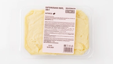 Большая порция любимого всеми гарнира. Пюре приготовлено с молоком, сливками и сливочным маслом. Поэтому оно нежное и воздушное — совсем как домашнее!