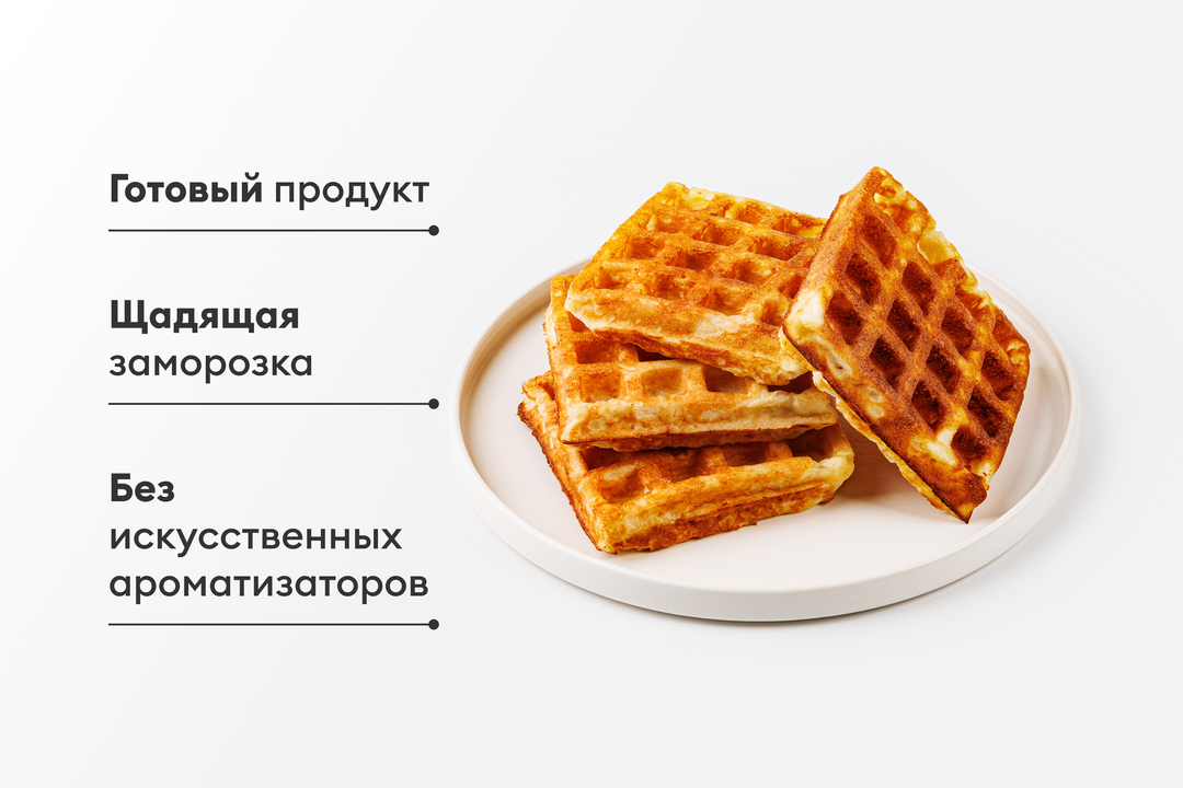 Воздушные картофельные вафли — беспроигрышный вариант для сытного, вкусного и «фотогеничного» завтрака! Приготовленные с добавлением отварного картофеля и молока, они имеют очень нежный вкус и отлично подружатся с любым соусом, намазкой и начинкой. Например, на вафли можно выложить творожный сыр и сёмгу. Или сделать из них сэндвич с яйцом и беконом. Вафли вкусно есть со всевозможными паштетами и можно подать просто со сливочно-грибным соусом. В упаковке — 4 вафли. В замороженном виде они могут храниться до трёх месяцев. В нужный день разморозьте их при комнатной температуре (понадобится около 20 минут) и разогрейте любым способом.