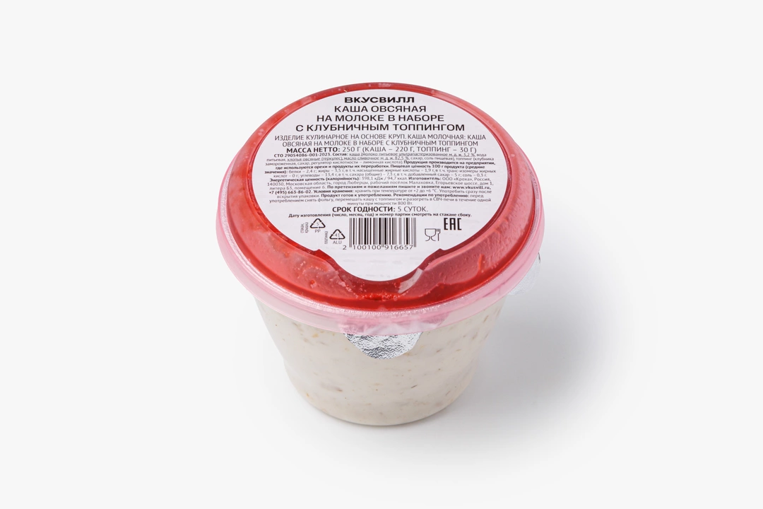 Каша овсяная на молоке в наборе с клубничным топпингом