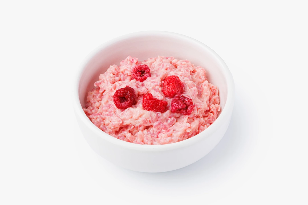Рисовая каша приготовлена на безлактозном молоке. Мы добавили в неё свекольный сок и быстрозамороженную малину, чтобы придать лёгкий ягодный вкус и аромат. Это готовое решение для питательного завтрака, когда нет времени на долгую готовку. Удобный стаканчик можно взять с собой в дорогу или в офис, чтобы быстро перекусить.
