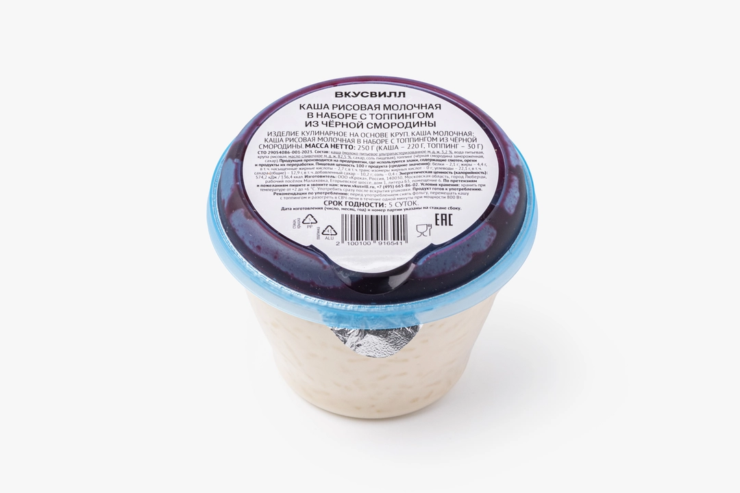 Каша рисовая молочная в наборе с топпингом из черной смородины