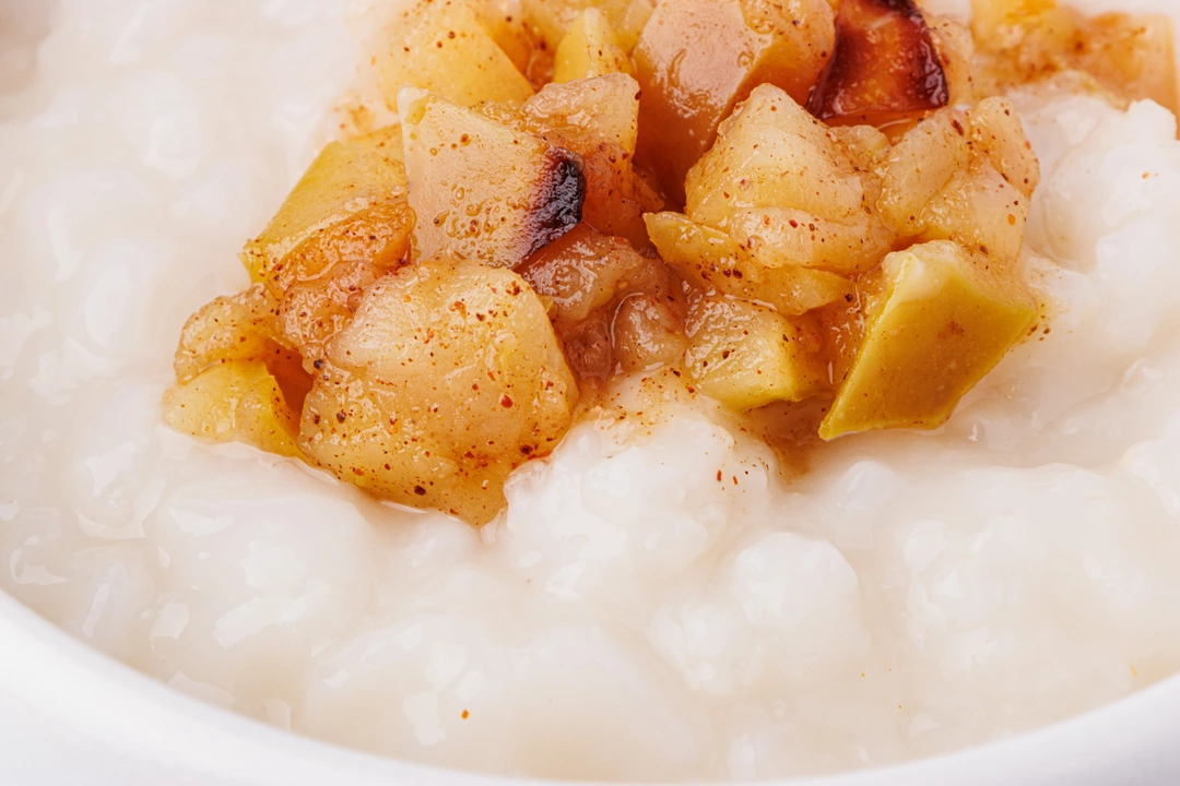 Нежная рисовая каша с кокосовым молоком — лёгкое и питательное блюдо, которое привлекает мягким ароматом кокоса и сливочной текстурой. В сочетании с яблочным чатни, придающим кисло-сладкие ноты, каша становится ещё более насыщенной и ароматной. Чатни, приготовленное из свежего яблока с добавлением лимона и корицы, дополняет основное блюдо, создавая гармоничное сочетание сладости и лёгкой пряности.