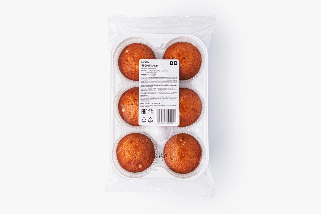 Небольшие пышные кексы с мягкой серединкой и ванильным вкусом созданы для настоящих сладкоежек. Ванильная эссенция создаёт тонкий аромат, подчёркивая сладость выпечки. Это замечательный вариант к утреннему кофе или лёгкий десерт к вечернему чаю. Удобная упаковка позволяет взять кексы с собой в дорогу или в офис.