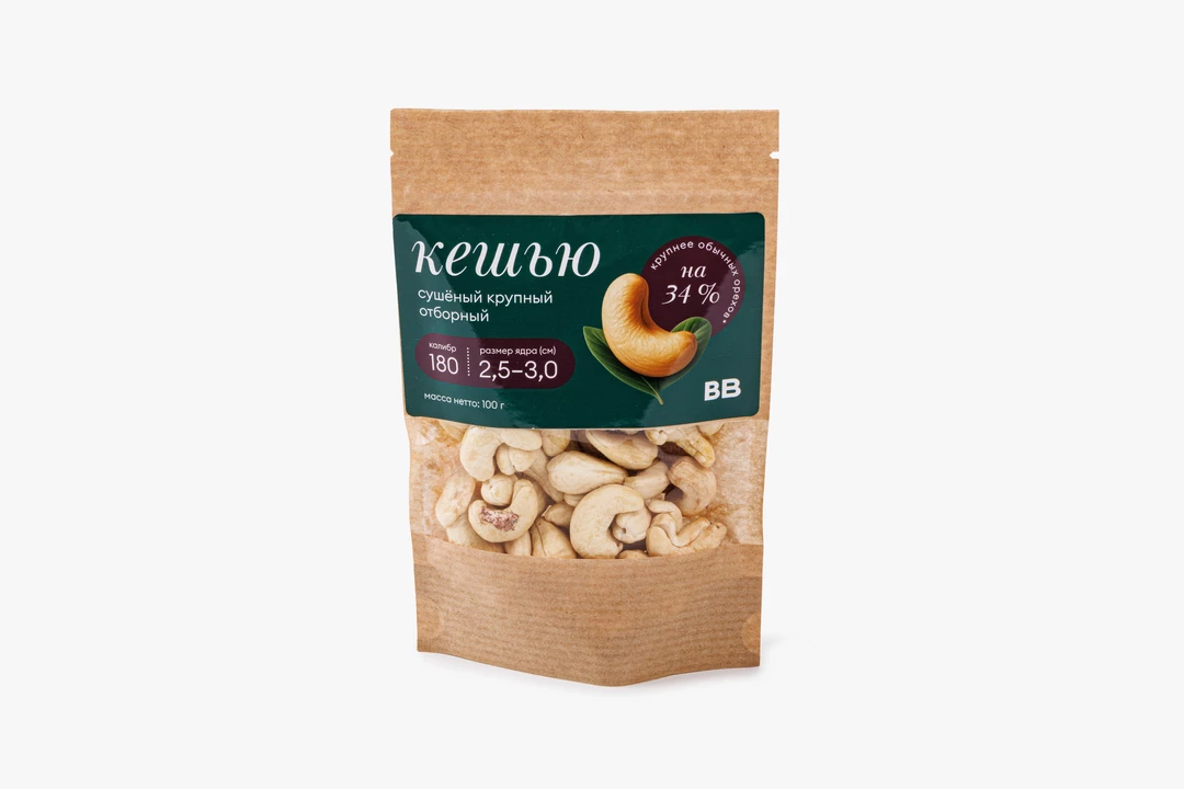 Кешью обладает мягким сливочным вкусом и едва уловимой сладостью. Мы отобрали для вас самые крупные орехи. Они хороши в качестве сытного перекуса на прогулке или в путешествии. Их также можно добавить в утреннюю кашу, мюсли или йогурт, чтобы сделать блюда питательнее.
