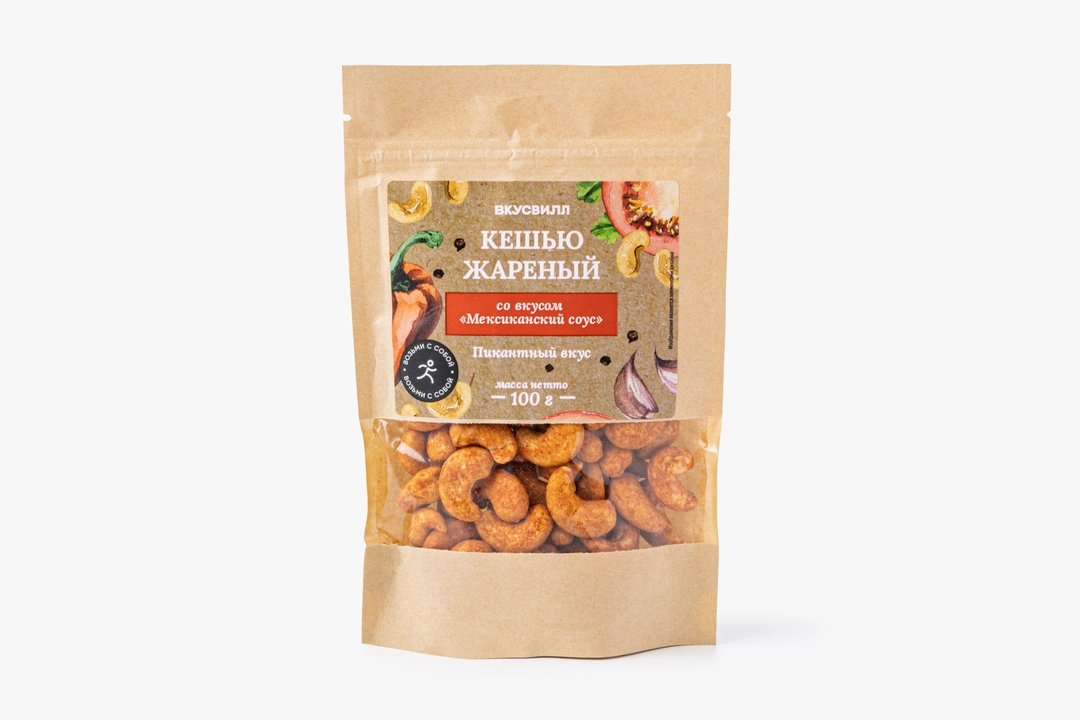 Жареный кешью с пряным вкусом мексиканского соуса понравится любителям острых снеков. Пикантность орешкам придаёт смесь специй с томатами, луком, чесноком и перцем чили. Необычное сочетание нежной, чуть маслянистой ореховой серединки с пикантной оболочкой делает вкус по-настоящему оригинальным. Упаковку удобно брать с собой в дорогу, на пикник или использовать для перекуса в офисе. Продукт не содержит искусственные ароматизаторы