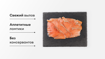 Аппетитные ломтики малосолёной кеты в вакуумной упаковке. Классика питательных завтраков и непременный ингредиент фуршетных закусок. Как обычно, в составе ничего лишнего: только кета и соль. А вот природный цвет красной рыбы — характеристика непостоянная. Его насыщенность зависит даже от времени года, а мы не используем красителей. Поэтому рыба может быть ярче или бледнее, чем на фото. В летний период используем чуть больше соли, чем обычно. Это необходимо, чтобы в жаркую погоду продукт оставался свежим и вкусным.