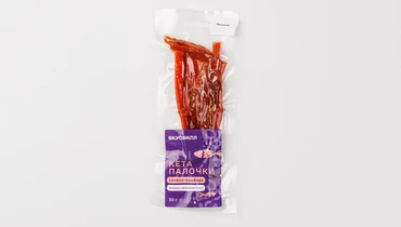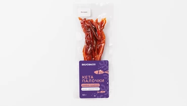 Вяленые палочки из кеты — это не только удачная закуска, но и продукт, богатый белком. В 100 г продукта содержится более 20 г протеина! Пряные рыбные палочки станут питательным перекусом и отлично подчеркнут вкус любимых напитков.
