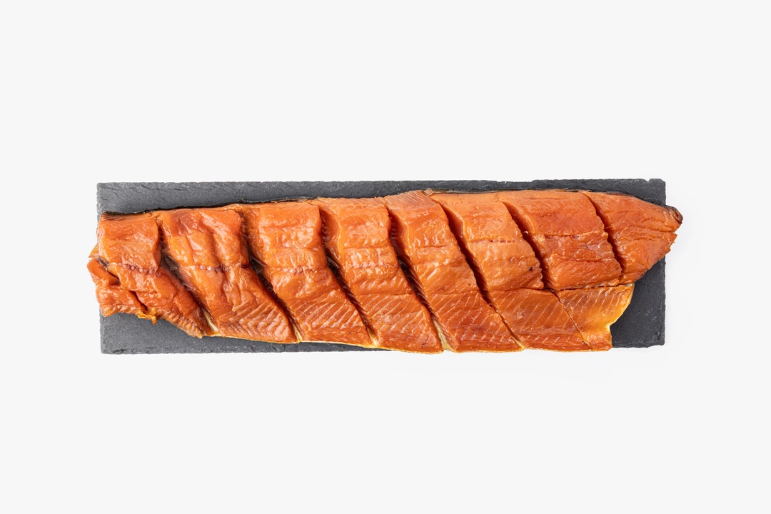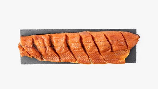Традиционное восточносибирское и дальневосточное блюдо из рыбы. Мы берём филе кеты, делаем аккуратные надрезы, приправляем солью и коптим на натуральной древесной щепе. Мясо получается слегка жирным, плотным, с дымным ароматом. Юкола хороша в качестве снека или как компонент рыбной тарелки. Продукт готов к употреблению. В его составе нет консервантов, искусственных красителей и ароматизаторов. Возможно наличие мелких косточек или их фрагментов, будьте внимательны. Продаётся на развес.