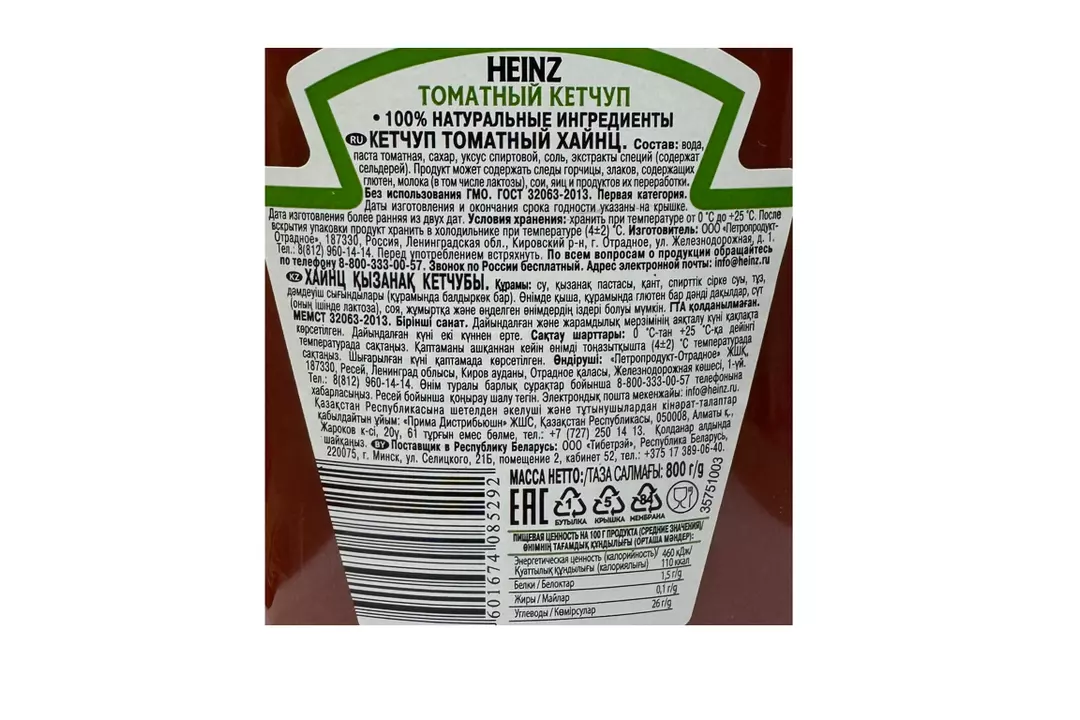 Томатный кетчуп Heinz — это классика для миллионов потребителей. Его вкус уникален и хорошо узнаваем во всем мире. Кетчуп Heinz сохраняет все свойства спелых томатов особого сорта, выращенных на солнце в открытом грунте. Мы бережно перерабатываем плоды в томатную пасту, добавляем авторскую смесь специй Heinz и пару дополнительных натуральных ингредиентов. Наш многолетний опыт, экспертиза и любовь к своему делу позволяют получить неповторимый, ароматный и невероятно вкусный томатный кетчуп Heinz. Heinz — все дело в томатах. - 100% натуральные ингредиенты; - Без крахмала; - Без искусственных ароматизаторов и красителей; - Без консервантов и ГМО. Томатный кетчуп Heinz идеально дополнит любимое блюдо и сделает его еще вкуснее. Кетчуп подойдет как для шашлыка, хот-догов, бургеров или других мясных блюд, так и для гарниров, например, макарон или жареного картофеля. Специально для больших компаний и семей Heinz предлагает увеличенный формат упаковки: 800 г томатного кетчупа в очень удобной пластиковой бутылке с крышкой флип-топ. Бутылки закрыты крышками с колпачками, что позволяет легко и аккуратно хранить и дозировать продукт. Страна производитель-Россия