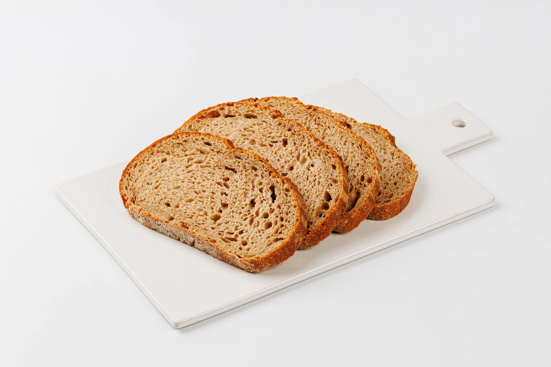 Бездрожжевой хлеб, изготовленный с добавлением цельнозерновой муки. Отличается плотным мякишем и хрустящей корочкой. Подходит для приготовления бутербродов и закусок. Оптимально сочетается с рассольными и творожными сырами, зеленью и красной рыбой.