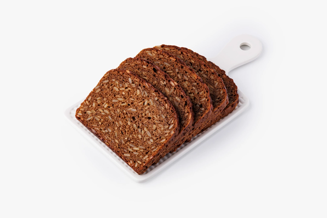 Хлеб из заварного теста на ржаной и пшеничной муке с добавлением яблочного повидла. Семена подсолнечника делают его слегка хрустящим и придают маслянистую ноту. Для вашего удобства продукт нарезан на аккуратные тонкие ломтики.