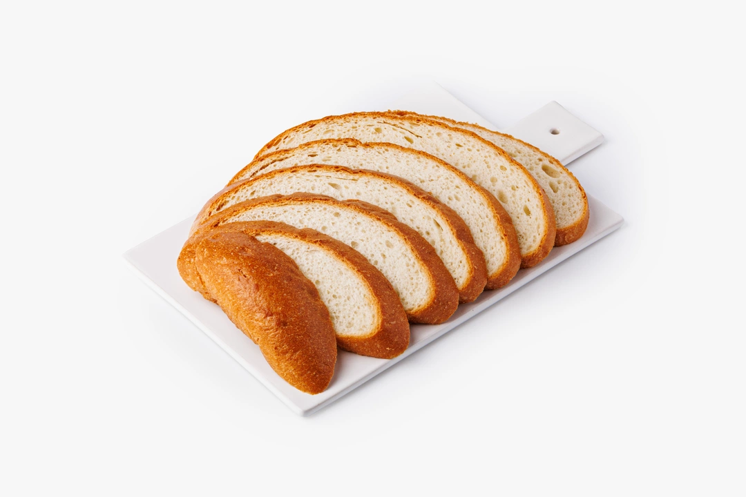 Ароматный пшеничный хлеб с нежным пористым мякишем, выпеченный на мацони. Он станет отличным дополнением первых и вторых блюд, основой для тёплых тостов и хрустящих гренков. А готовая нарезка сделает сервировку и приготовление бутербродов ещё удобнее. К тому же, такой хлеб удобно взять с собой на пикник и барбекю.