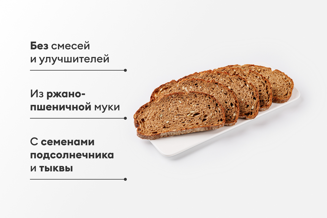 Пшеничной-ржаной хлеб, изготовленный с добавлением ржаной патоки и солода. Обладает сладковатым вкусом с выразительными пряными нотами. Семечки подсолнечника и тыквы придают хлебу дополнительную сытность. Он подходит в качестве дополнения к основным блюдами, а также для приготовления бутербродов и домашних сухариков.