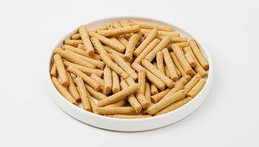 Подрумяненные палочки из амарантовой и пшёной муки с семенами подсолнечника. Выпекаем их без дрожжей и растительного масла. Вкус получается нежно-маслянистым, едва солоноватым, с приятными злаковыми нотками. Палочки подойдут как для соло-подачи, так и для сопровождения «намазок». А благодаря компактной упаковке с зип-замком их удобно брать с собой, чтобы устроить питательный перекус: всего в половине пачки содержится почти 10 г белка.