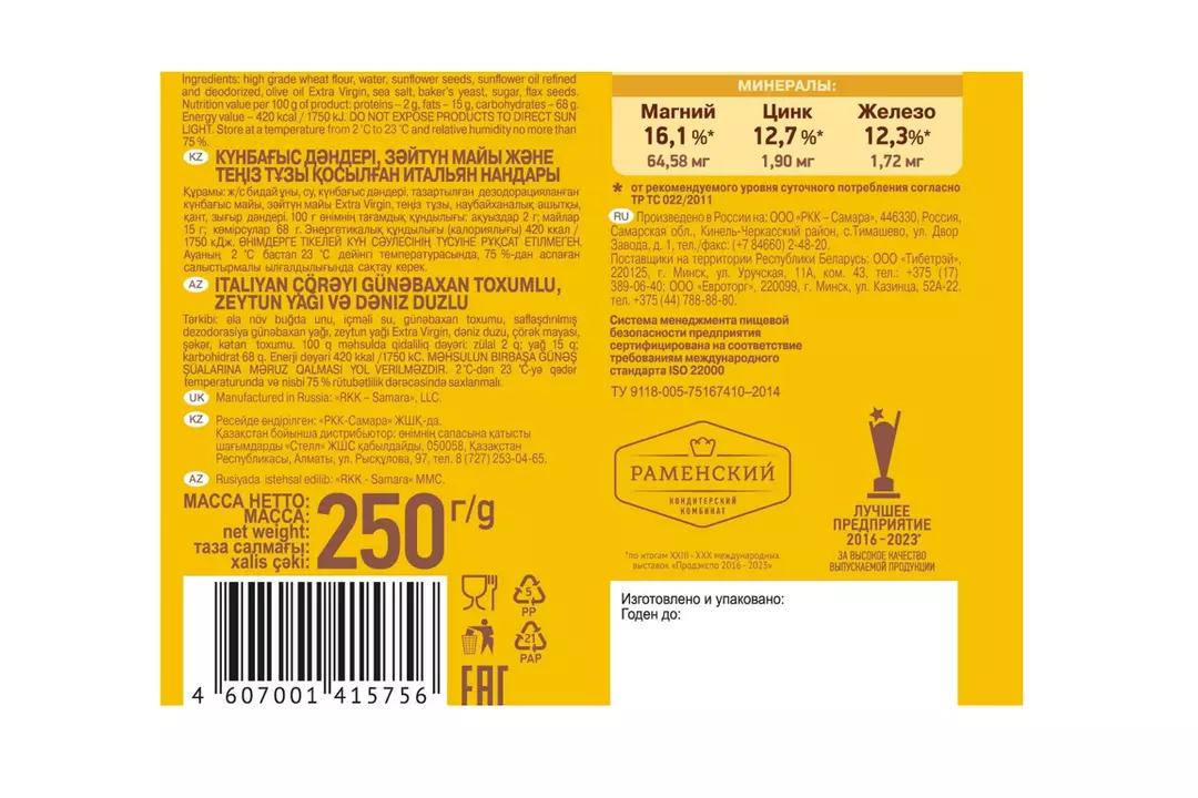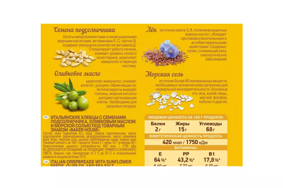 Хлебцы Baker House Итальянские с семенами подсолнечника оливковым маслом и морской солью 250 г / Супермаркет