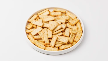 Хрустящие хлебцы со средиземноморским вкусом и приятным ароматом розмарина. Морская соль придаёт ломтикам деликатную солоноватость, а семена льна — едва заметный ореховый привкус. Тесто замешано на оливковом и подсолнечном масле, поэтому вкус получается нейтральным, без горчинки. Чеснок почти не ощущается, но аккуратно подчёркивает травяные ноты. Хлебцы хорошо сочетаются с мягкими сырами, оливками, свежими или вялеными томатами. Их можно подавать вместо привычного хлеба к супу или салату.