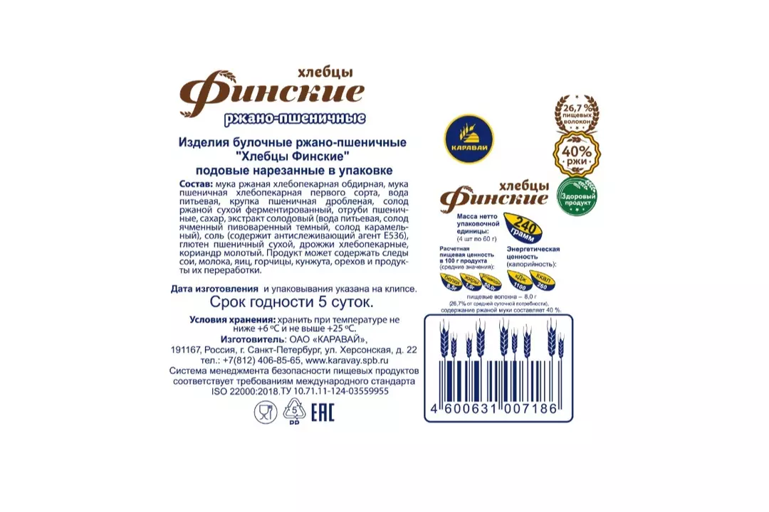 Хлебцы Каравай Финские ржано-пшеничные 240 г / Супермаркет