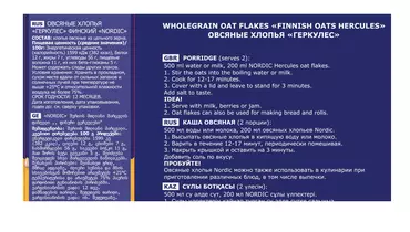 Благодаря уникальной технологии переработки зерна Финский Геркулес Nordic варится всего 12 минут. Место произрастания большей части зерна, из которого производится продукция под маркой Nordic, является Финляндия. Эта страна традиционно и заслуженно считается одной из самых экологически благополучных стран мира. Хлопья овсяные из цельного зерна.