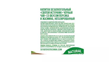 Холодный черный чай Святой Источник Персик Жасмин негазированный 1 л / Супермаркет