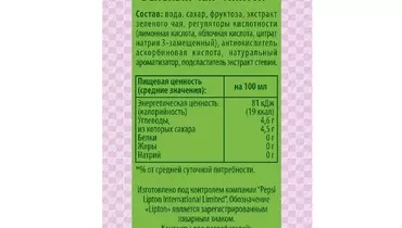Холодный зеленый чай привнесет в повседневную жизнь немного солнца и даст возможность моментально освежиться и насладиться потрясающим вкусом знакомого и любимого холодного чая Lipton! Благодаря сбалансированному вкусу и удобной упаковке, он идеально подходит для ужина дома, обеда с коллегами, пикника в парке или просто отдыха вместе с друзьями и семьей. Пейте охлажденным. Страна-производитель Россия