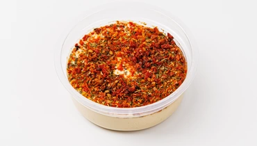 Сытная закуска из перетёртого нута и кунжутной пасты. Сам по себе хумус очень нежный, слегка терпкий и сладковатый. А мы «украсили» его вялеными томатами и душистыми травами: кинзой, петрушкой, сельдереем, базиликом, чабером. И вкус заиграл новыми красками — в нём появились богатые пряные ноты и тонкая томатная кислинка. Сочетать хумус можно с чем угодно, даже с рыбой и мясом. Но наиболее популярный вариант — нарезанные брусочками овощи: сельдерей, морковь, огурцы, перец. Также закуске отлично подойдут чипсы и хрустящие хлебцы.