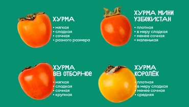 У мини-хурмы плотная структура и имеются косточки. При этом она спелая, сладкая и совсем не вяжет. И к тому же очень симпатичная: ярко-оранжевая, вытянутой формы, весом менее 100 г.