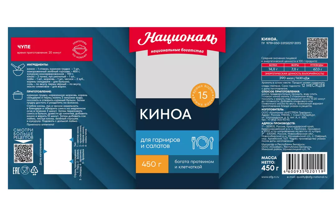 Киноа по вкусу напоминает необработанный рис, хорошо подходит в качестве гарнира и для приготовления каш. В киноа содержатся аминокислоты и большое количество растительных белков. Страна производитель Россия