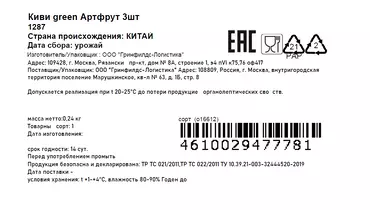 Киви Green проверено:спелое от Artfruit позволит почувствовать вам сладость банана, дыни и свежесть крыжовника. Это необыкновенно полезное и вкусное лакомство для всей семьи! Оно превосходит по содержанию витамина С многие фрукты, включая лимоны, апельсины и клубнику. Проверено:спелое – это отличительный знак, который подтверждает, что фрукт можно сразу съесть, и он будет максимально сочным и вкусным. Чтобы найти в магазине идеально спелые фрукты, достаточно обратить внимание на печать. Artfruit – проверено:спелое Страна происхождения Китай. Страна производитель Россия.