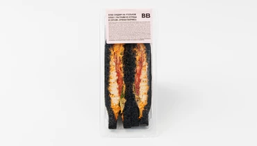 Контрастный, яркий и с выразительным вкусом — этот сэндвич собран не просто на ржаном, а на угольном тостовом хлебе. Такой тёмный цвет здесь получился за счёт растительного угля, а искусственных красителей мы не добавляем. Внутри — пастрами из куриной грудки с ароматными специями и лёгкими цитрусовыми нотами. Свежие томаты, листья салата и густой соус с паприкой и шрирачей дополняют текстуру и создают пряный, слегка пикантный акцент. Хорош как сытный перекус или альтернатива обеду, особенно в тёплом виде. А ещё — когда хочется попробовать что-то новенькое и оригинальное из сэндвичей.