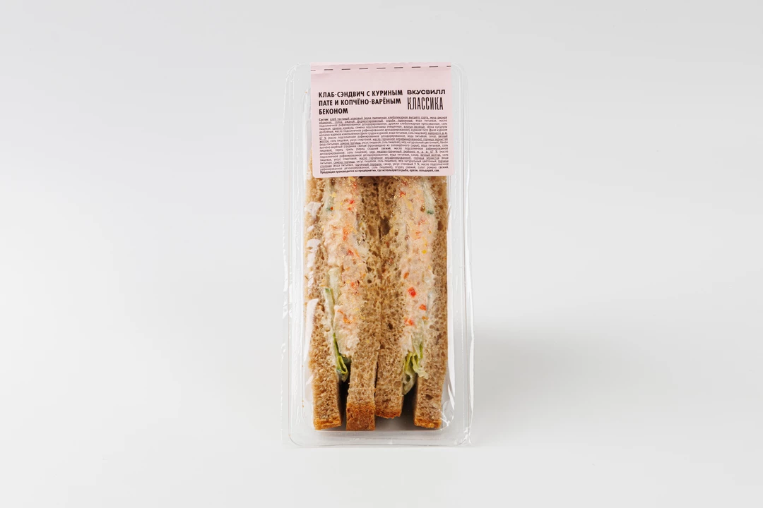 Клаб-сэндвич с куриным пате и копчено-вареным беконом