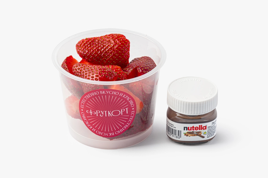 Спелая и ароматная клубника, нарезанная в форме сердечек — удобная порция на одного. Подаётся с шоколадно-ореховой пастой. Используем отборные ягоды и готовим нарезку в течение дня — всегда свежая, с приятным кисло-сладким вкусом. Фруткорт — это наша собственная кухня, где мы сами готовим свежие нарезки и напитки в течение дня. Больше информации и другие позиции можно найти в каталоге по слову «фруткорт».